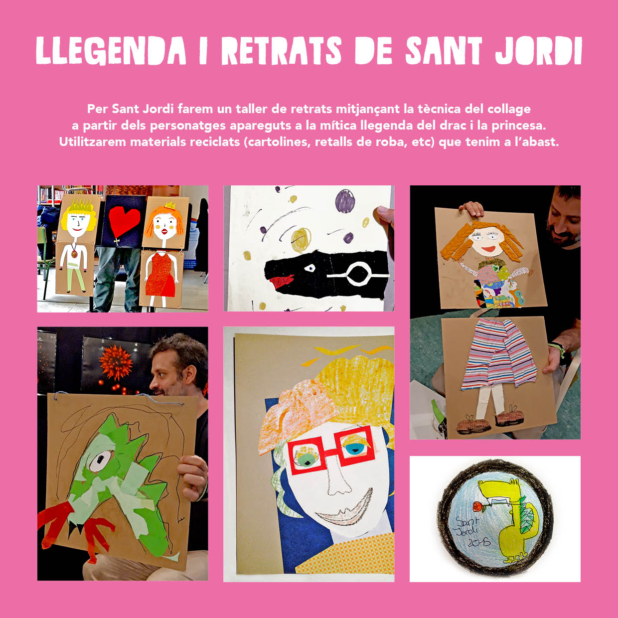 Revetlla de Sant Jordi amb la Companyia La Sal d'Olot. Escoltarem la Llegenda musicada de Sant Jordi i farem el taller de retrats. Veniu a celebrar Sant Jordi amb nosaltres!