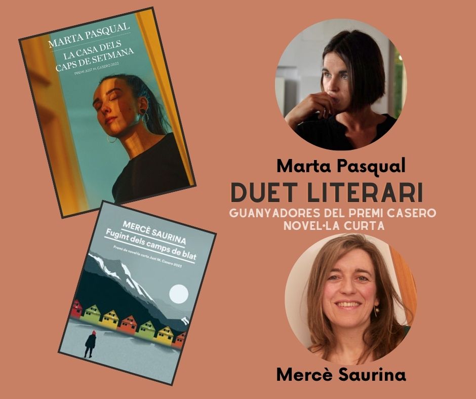 Duet literari entre Mercè Saurina, autora de Fugint dels camps de blat, guanyadora del Premi Casero 2023 i Marta Pasqual, autora de La casa dels caps de setmana, guanyadora del Premi Casero 2022.